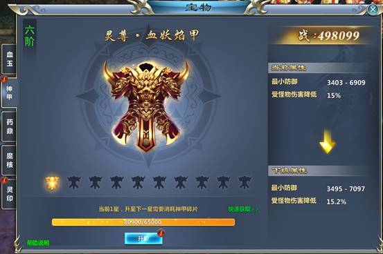 系统功能:消耗神甲碎片升阶