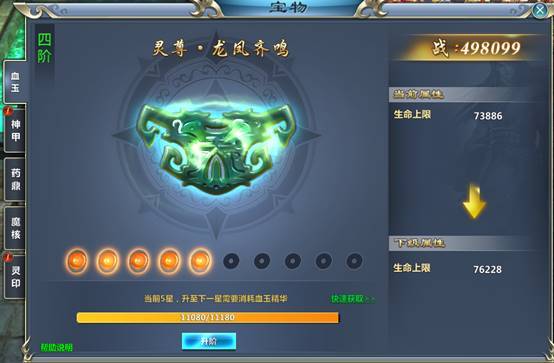 系统功能:消耗血玉精华升阶
