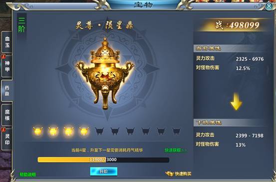 药鼎提升后可增加攻击并增强对怪物的伤害