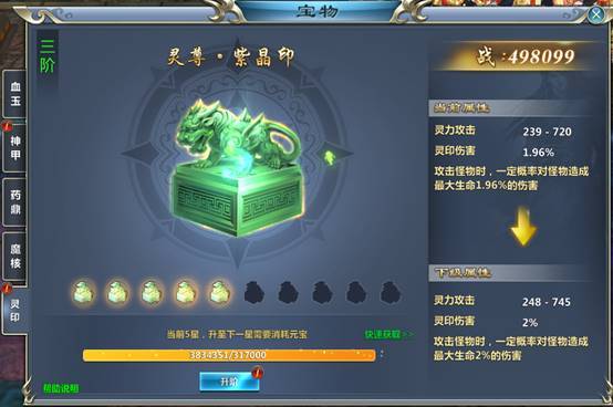 系统功能:消耗元宝升阶