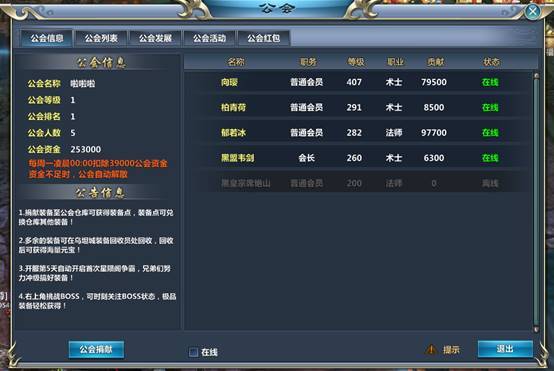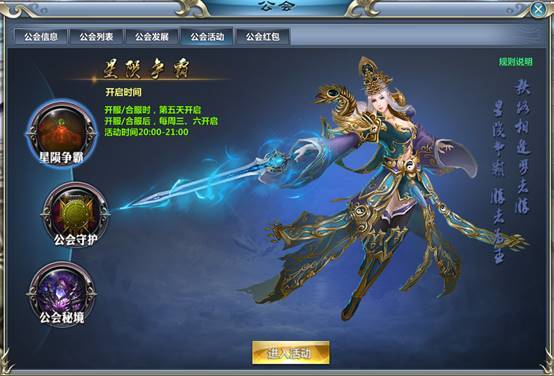 系统功能:进入公会后可参加公会活动,活动中有丰厚奖励